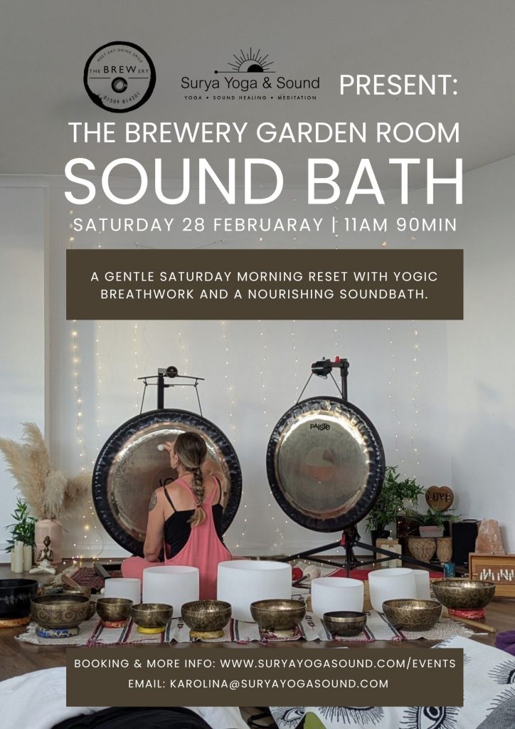 A gentle Saturday morning reset with yogic breathwork and a nourishing sound bath at the beautiful The BREWery Coffee Shop & Deli, inside the Garden Room. Only 12 spaces available.