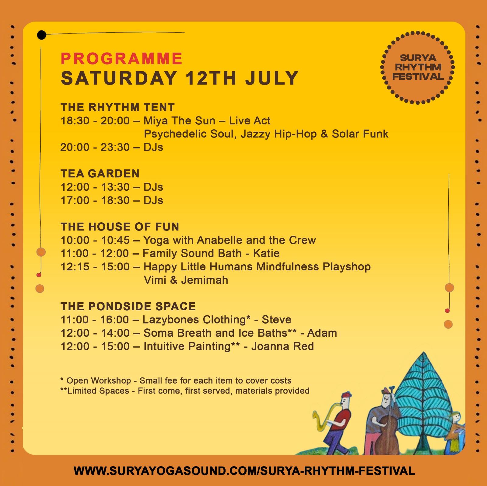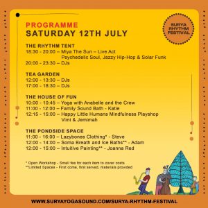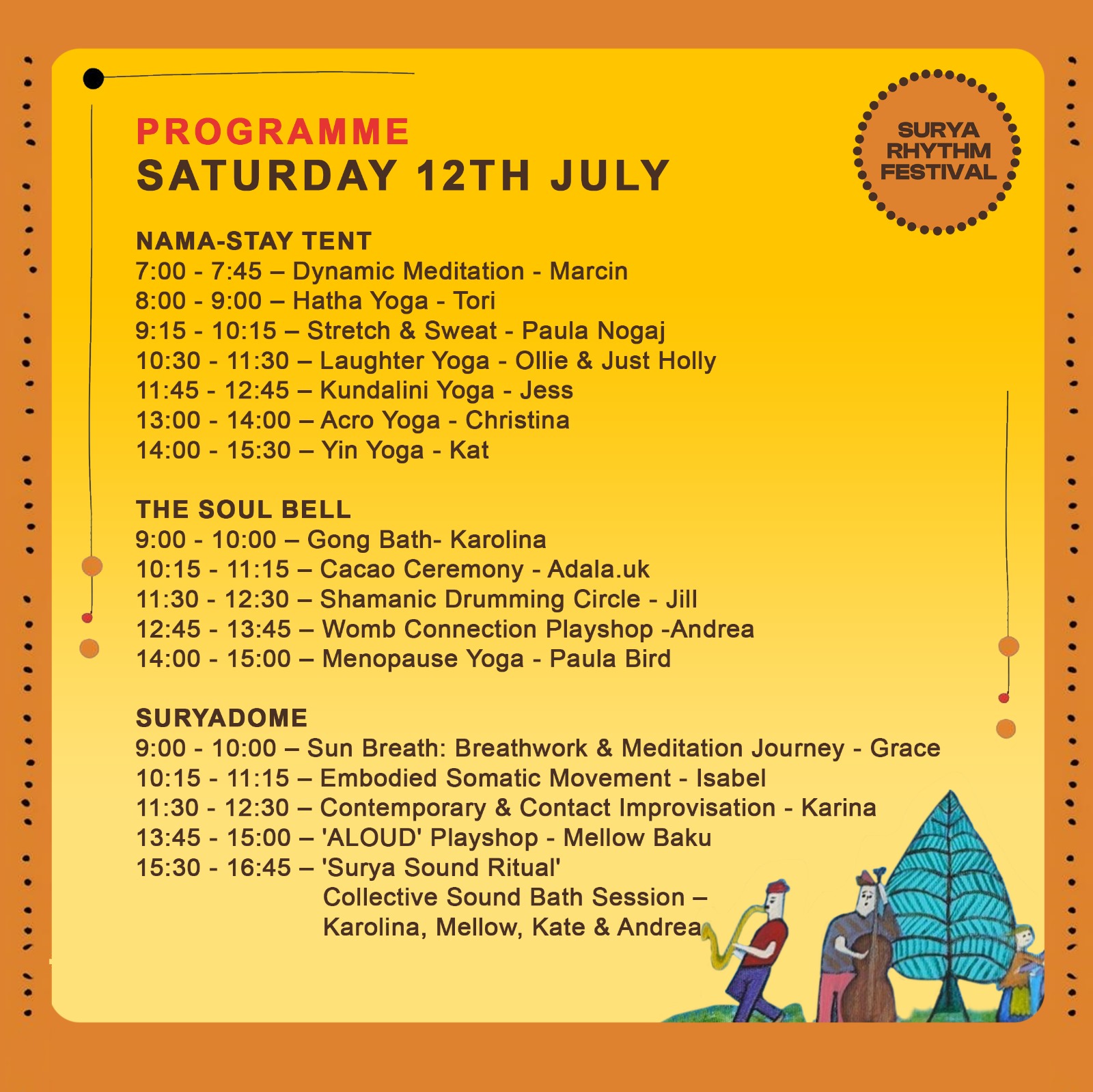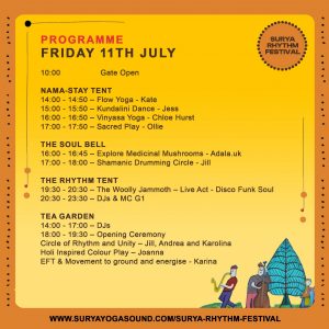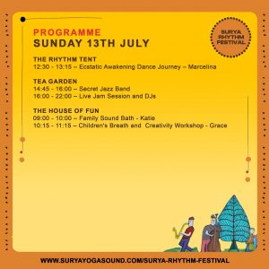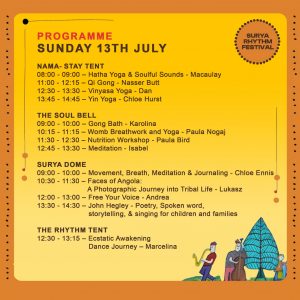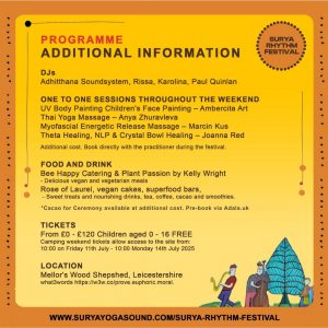 The word Surya means the sun — and like the sun, we move in rhythm. Rhythm lives in us — in our breath, in our steps, in our beating hearts. This weekend is about returning to that natural rhythm — through sound, movement, stillness, and shared presence. We come together for these three days to create a sense of tribe —a space of warmth, openness, and real connection. To move, to heal, to celebrate — in community, in love.